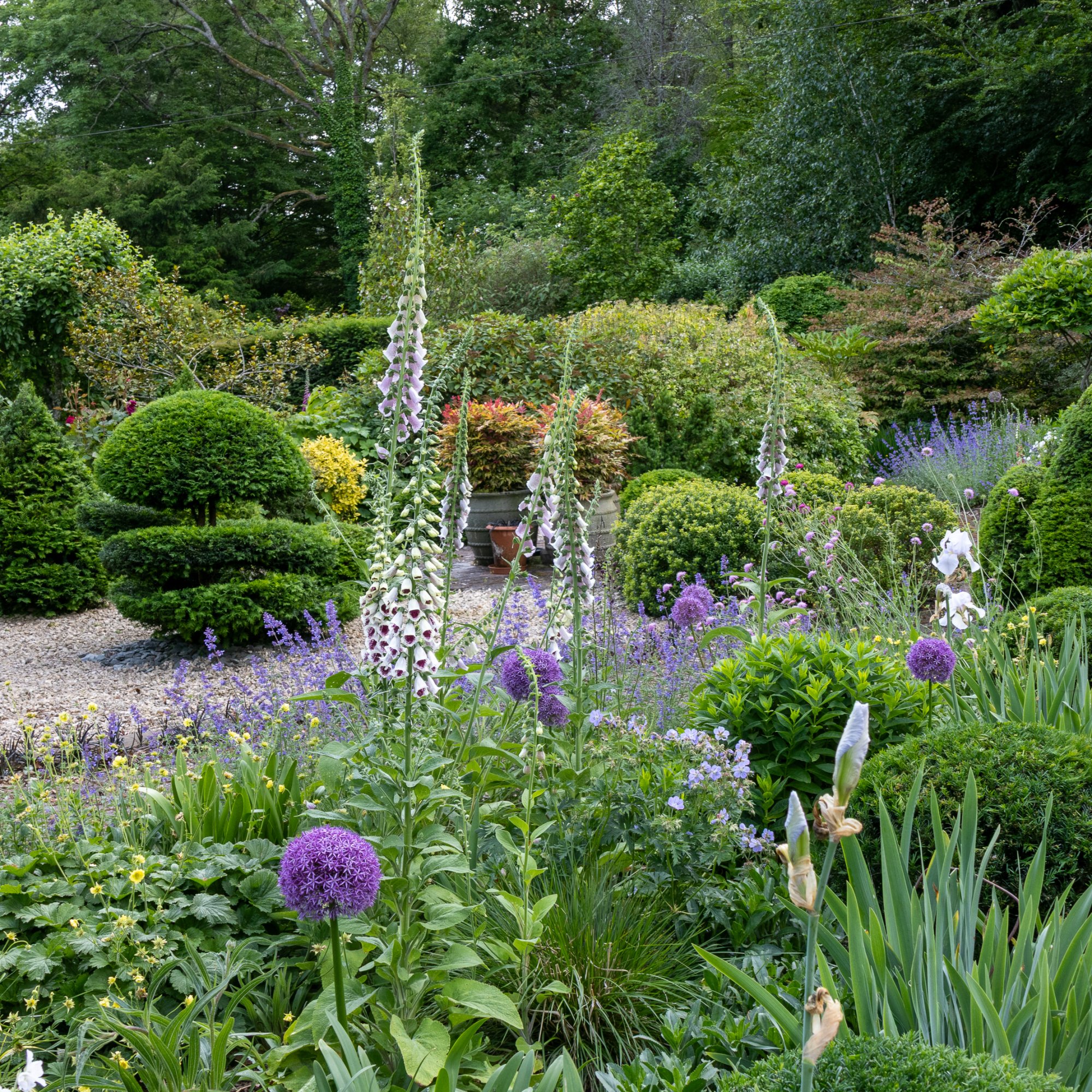 Greenfields is a 1.5-acre, plant person's gem of a garden set on the Gloucestershire side of the beautiful Wye Valley.  The garden has many mature trees and numerous rare plants and shrubs, all carefully planted to create discrete gardens within a garden. It is the passion and work of 'head gardener' Jackie Healy, who has combined a long interest in the propagation of plants alongside a strong interest in the forms, colours, and scents of plants to create a living, sculptural composition.